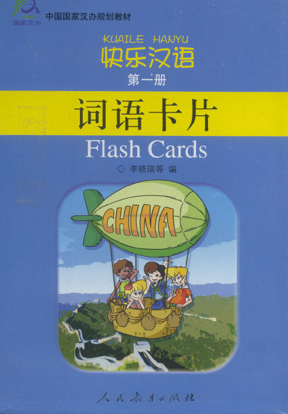 Kuaile Hanyu 1 Flash Cards, Verlag für Volksbildung, ISBN 7-107-17397-9, Format 21 x 15 cm, 102 einzelne Karten, auf jeder Karte ist vorne ein Foto oder ein Bild, das mit Pinyin darunter beschrieben wird, auf der Rückseite findet man dann das passende Beschreibung in Schriftzeichen, darüber hinaus wird immer angegeben, in welchem Text dieses Wort zu finden ist, Best.Nr.Card01